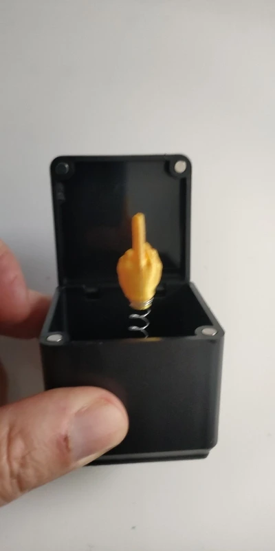 Once opened, a spring-loaded middle finger pops up for a shocking and hilarious reveal.