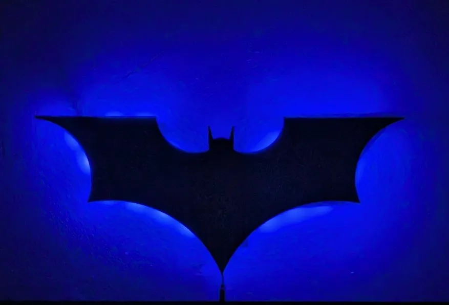 Bring bold superhero style to your room with a Batman-themed wooden wall lamp that doubles as sleek décor and a color-changing night light.